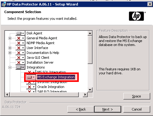 1. Install the Data Protector Agent on the Exchange Mailbox-Server – don’t forget to activate the “MS Exchange Integration”.![]()