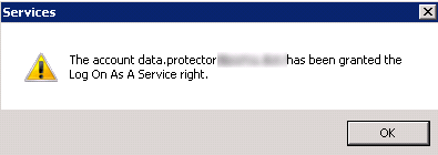 You have to set the created service account (data.protector in this tutorial) in local security policies as: