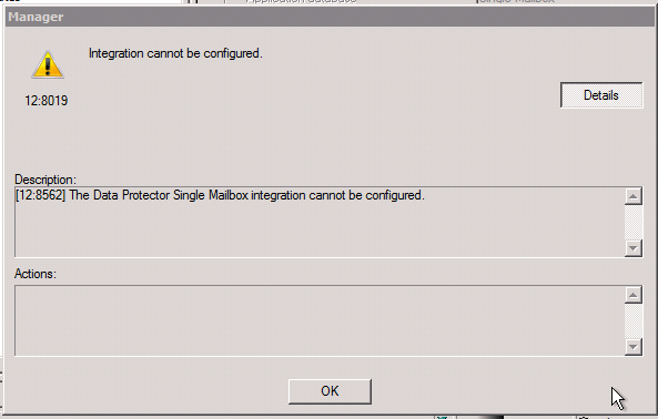 [12:8562] The Data Protector Single Mailbox integration cannot be configured.