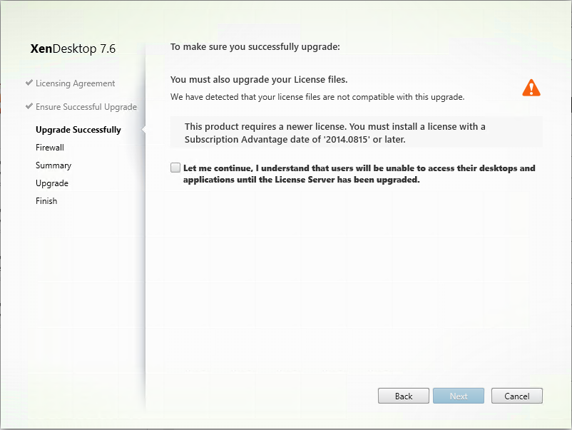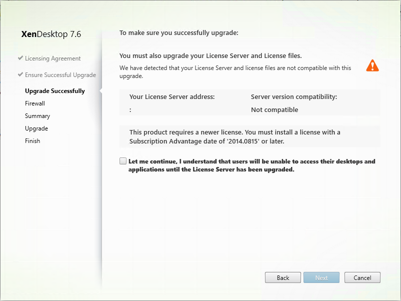 The more confusing message is shown if you use the Upgrade Wizard to upgrade the Citrix License Server which is not installed on a Delivery Controller. If you try to upgrade the following message is displayed: