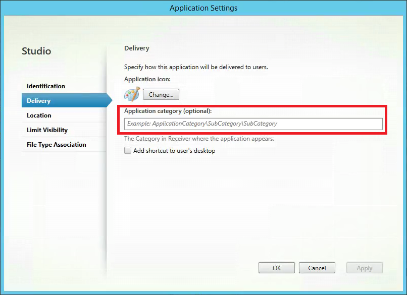 3. Change the application properties of every application that is installed on the published desktop and add the following description: