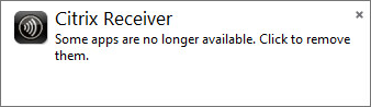 After clicking on this message the following is shown (if SelfServiceMode is disabled – otherwise the Receiver is shown and the removed application is greyed out):