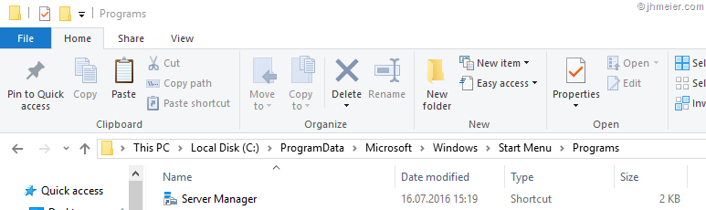 Remove pinned Server Manager Icon from Start Menu for new Users on Server 2016