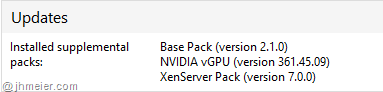 So it looks everything correct – but vGPUs are still not available. Possible it’s just a problem with the NVIDIA vGPU pack – let’s reinstall it with the XenCenter.