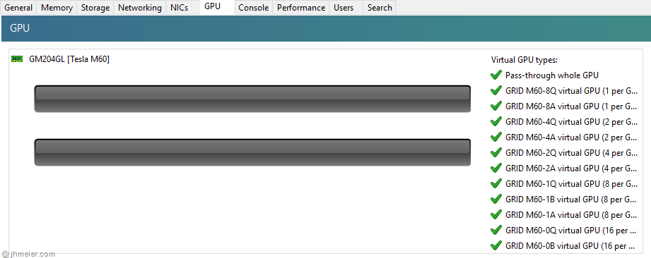 During the last days I had to invest an interesting problem. On a XenServer there were no vGPUs available on a Tesla M60 from NVIDIA. Only GPU Pass-through was available. ![]()