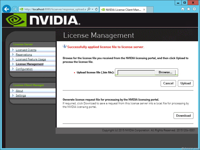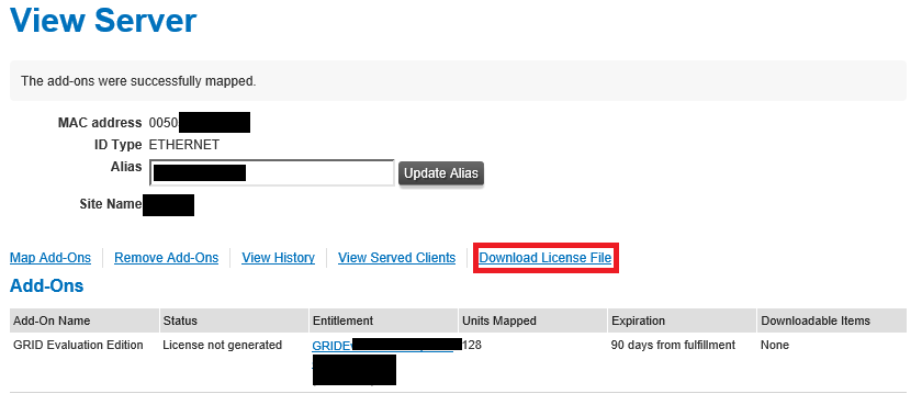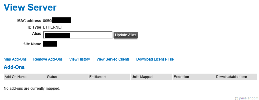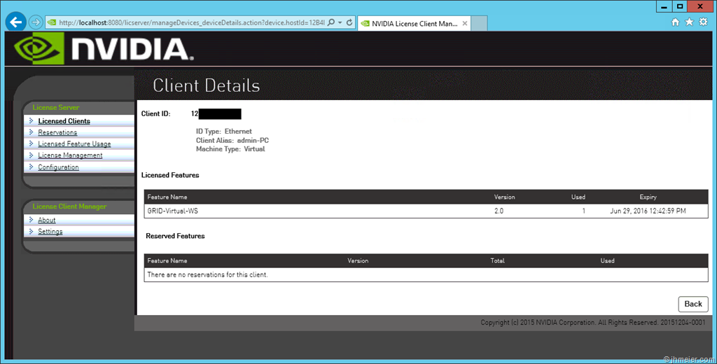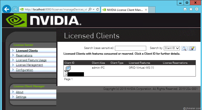 If you now open the License Server Management Interface again you will find the client under Licensed Clients.