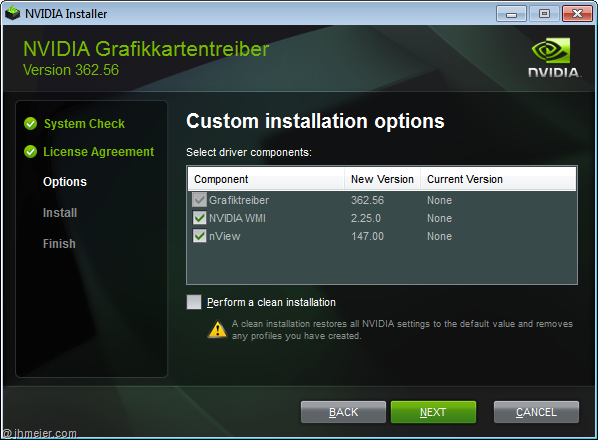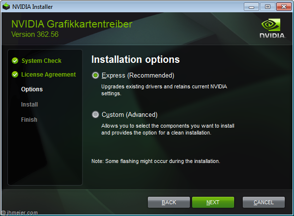 There is no difference between the installation except that in a Custom installation you can see which components are installed and it’s possible to Perform a clean installation if you had problems with the currently installed driver.