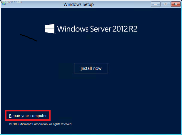 Now don’t choose Install now instead click on Repair your computer. ![]()