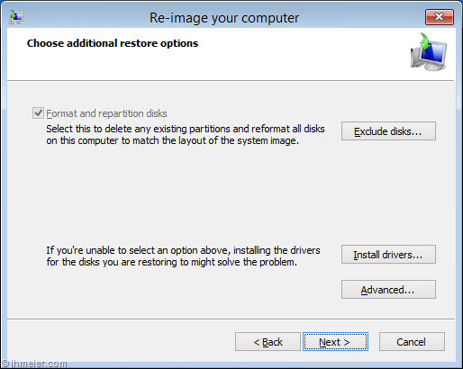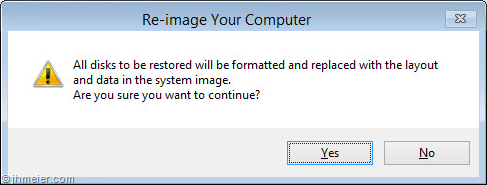 The wizard now detects the backup on the local disc – only if you created multiple ones you need to Select a system image. ![]()