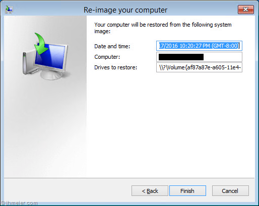 Windows is now creating the backup which will take some time (like reverse imaging…). ![]()