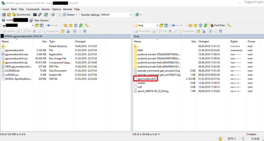So time for the manual way– copy the vGPU rpm File to the XenServer with WinSCP. ![]()