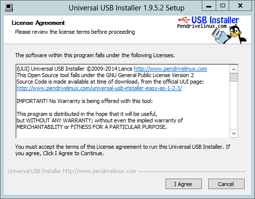 3. Open the Universal-USB-Installer and agree to the license ![]()