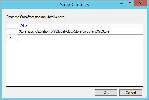 Computer Configuration => Administrative Templates => Classic Administrative Templates (ADM) => Citrix Receiver => Storefront => Storefront Accounts List ![]()