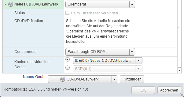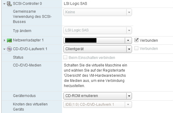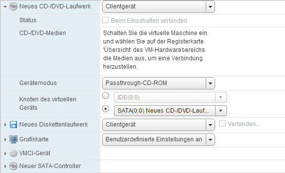 Though we removed the CD-/DVD-Drive and SATA Controller from a new VM and added the CD-/DVD-Drive using an “old” IDE-Port. ![]()