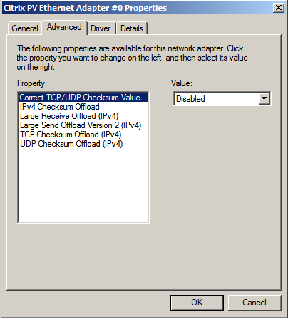 7. Disable “TCP Checksum Offload (IPv4)” ![]()