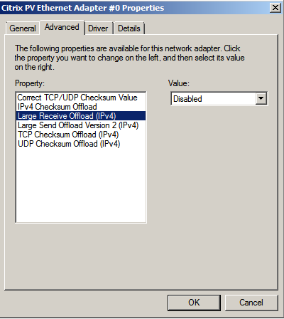 6. Disable “Large Send Offload Version 2 (IPv4)” ![]()