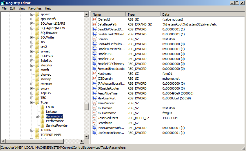 [HKEY_LOCAL_MACHINE\SYSTEM\CurrentControlSet\services\Tcpip\Parameters]